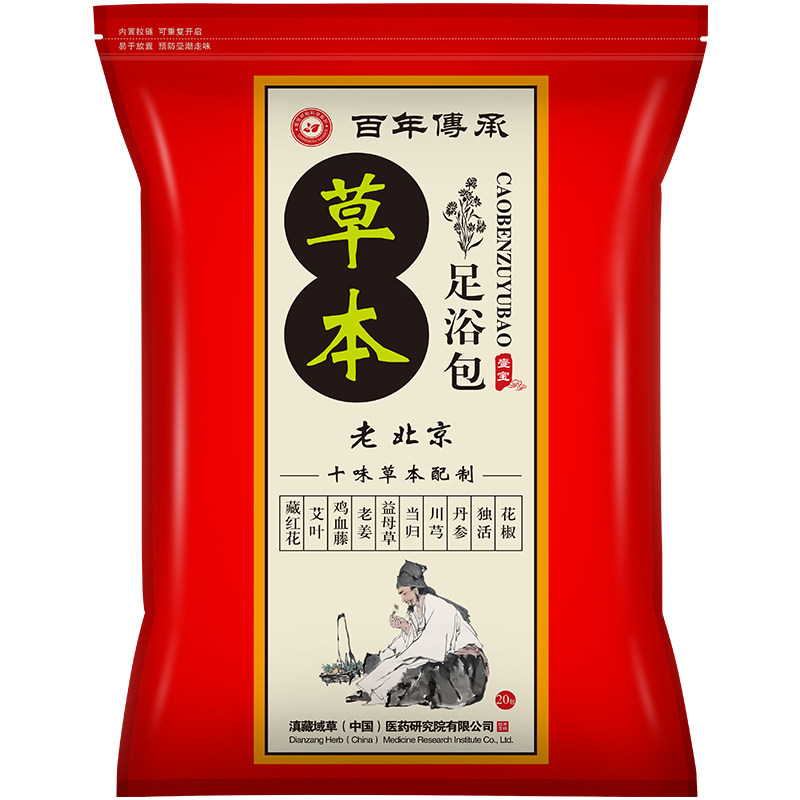 Herbal medicine bag for herbal medicine with herbal medicine in the foot