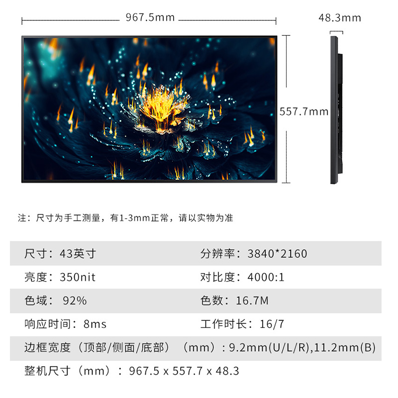 Samsung 4K display wall-mounted advertising machine Digital signage Conference office mall building video surveillance front desk display commercial display QB43R 43 inches