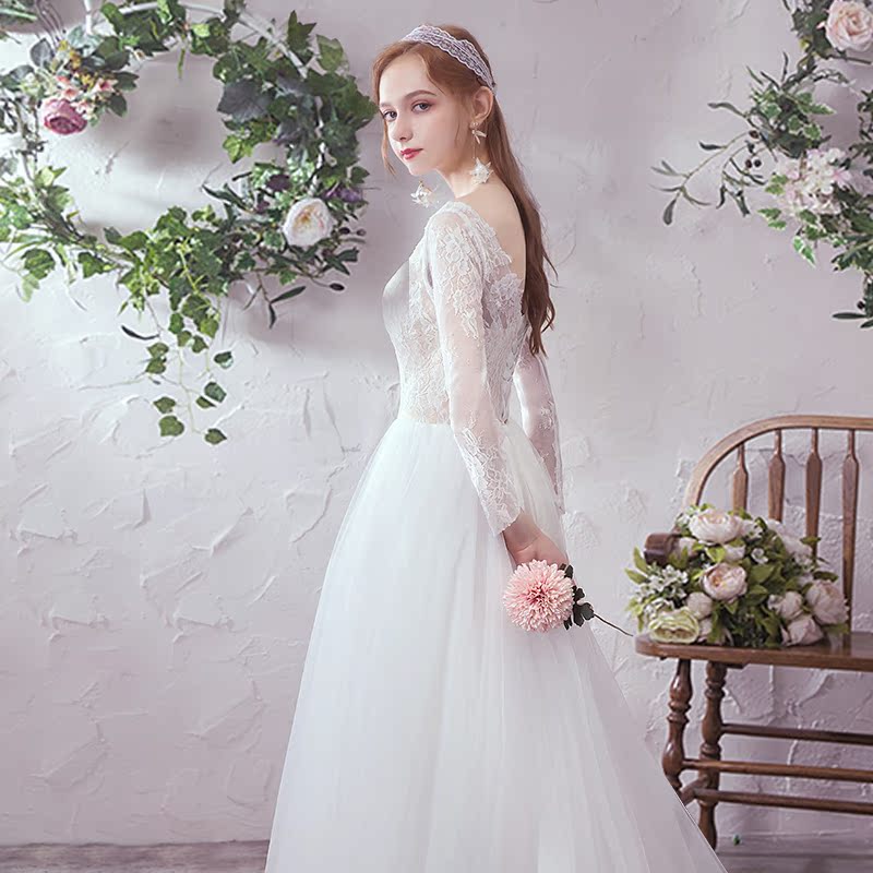 Light wedding dress 2020 new French bride forest wedding dress skirt simple travel shoot thin out gauze women's long sleeves