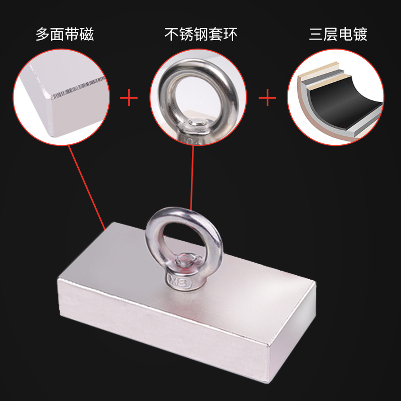 Strong magnet, super rectangular high-strength magnet, large neodymium rubidium round salvage magic ring, strong magneto