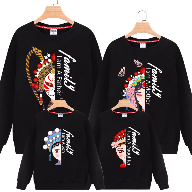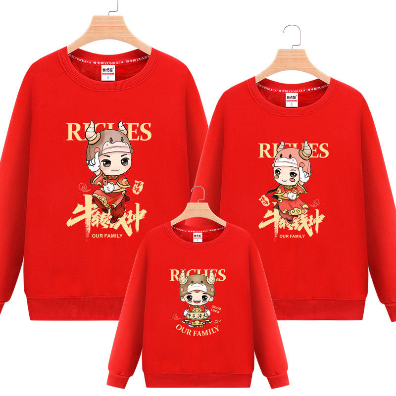 Fried street high-end parent-child outfit a family of three is not the same suit plus velvet plus thick cotton T Foreign school mother-daughter outfit top red