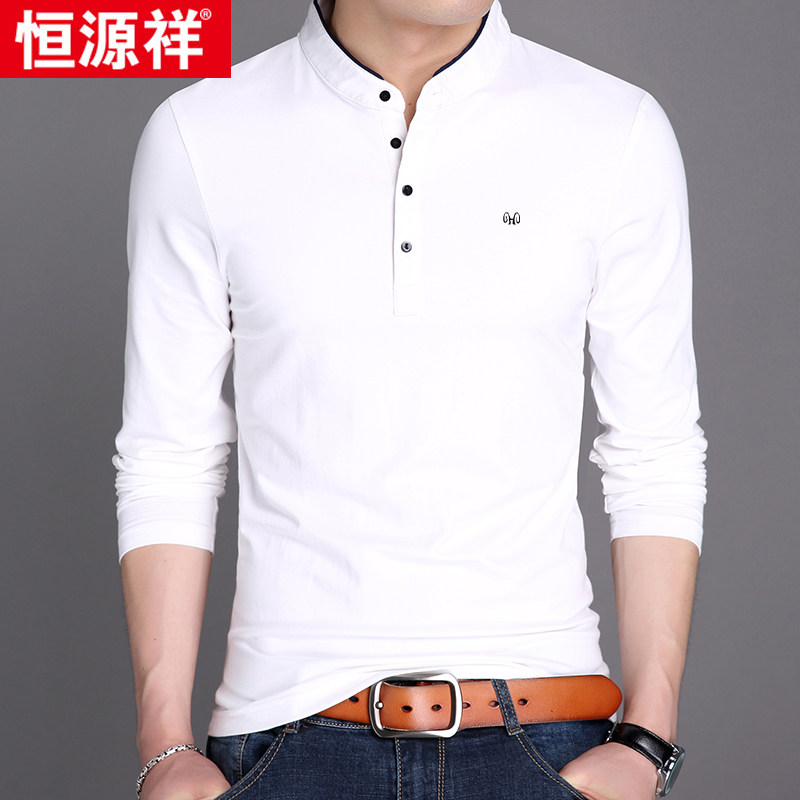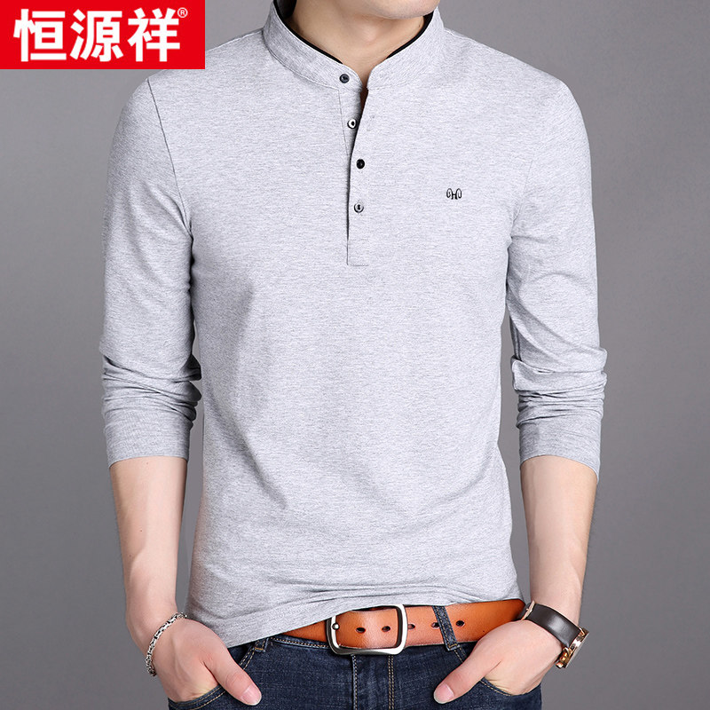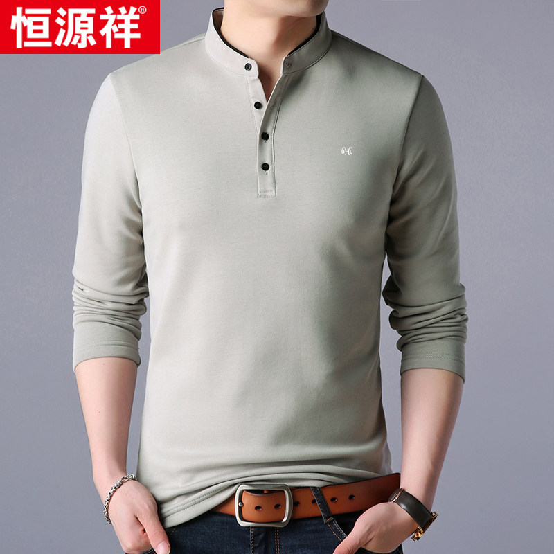 Hengyuan Xiang Middle-aged Man Long Sleeve T-shirt Pure Cotton Casual Men's Clothing Blouse Spring And Autumn Slim Fit T-shirt Tee Shirt