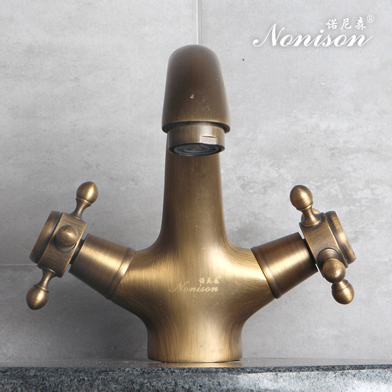 All copper antique European faucet T04 vintage drawing faucet Under the basin bathroom cold and hot water faucet