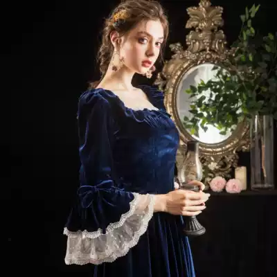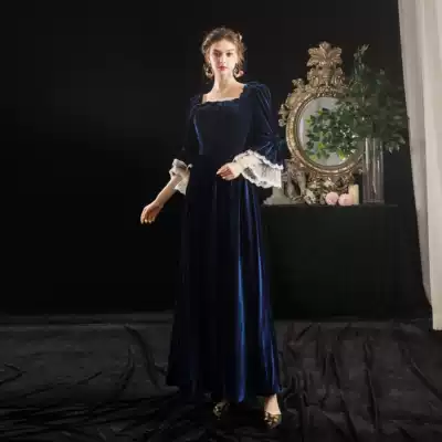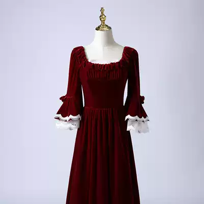 Velvet French court dress toast bridal dress dinner annual dress women autumn and winter evening dress long sleeve