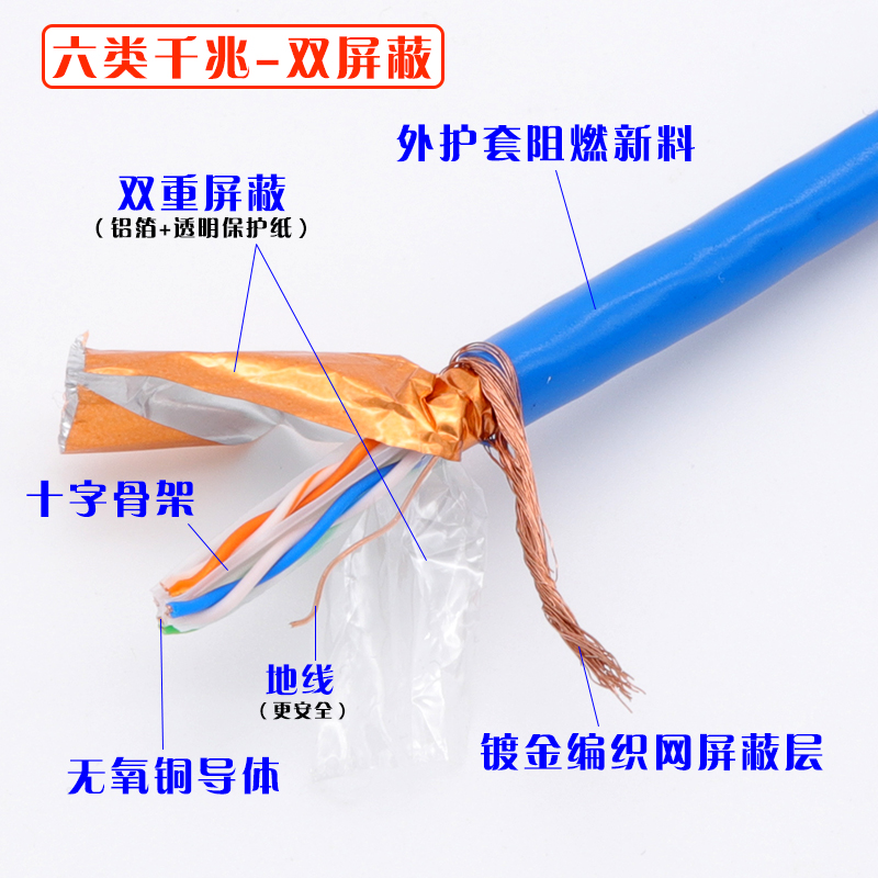 GBC 6 type of network gigabit double screen shielding network router household computer router high - speed indoor and outdoor pure copper