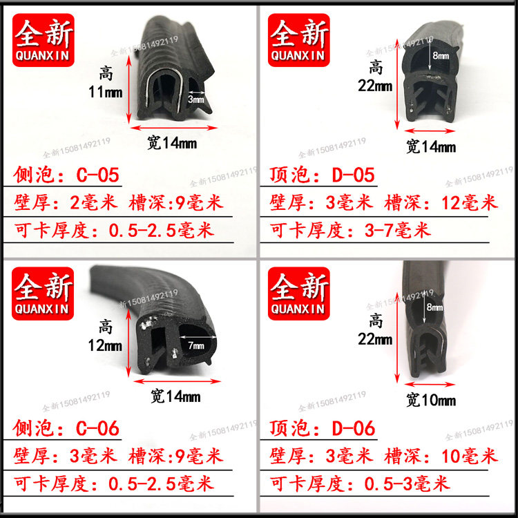 Top bubble rubber U-shaped edge seal strip excavator electrical box cabinet truck door side bubble seal anti-collision strip