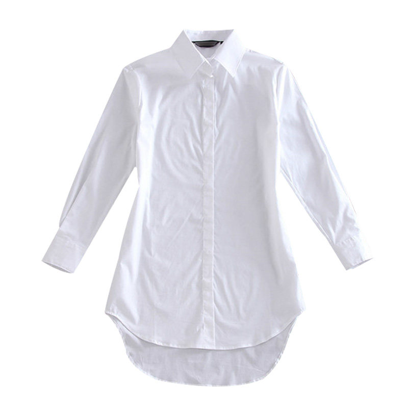 Medium long version large size white shirt female spring dress Long sleeves loose Han version Conspiculean Shirt Spring Clothes New Blouses