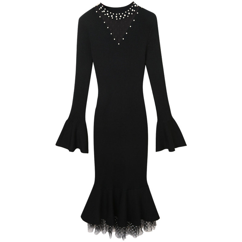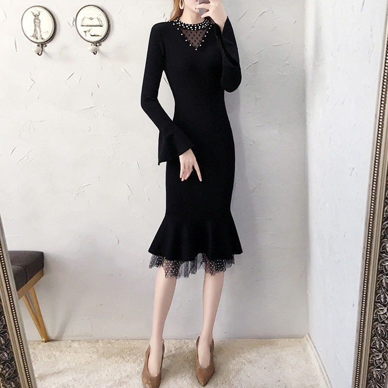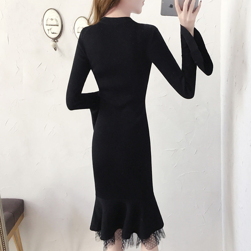 Knit Ocean Dress 2022 New Fall Temperament Fan Clothing Long Version Sweater Skirt Over Knee Bottom Skirt Spring