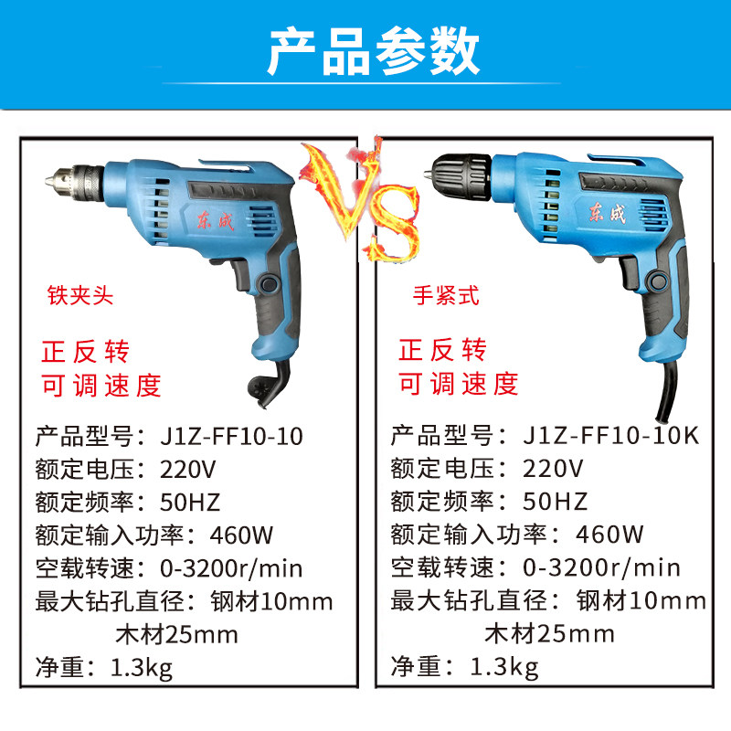Dongcheng electric drill J1Z-FF10-10K household screwdriver flashlight turn electric drill 220V electric screwdriver