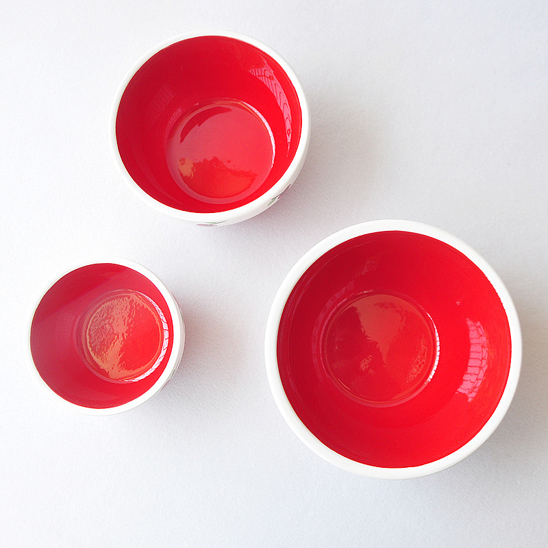 SLX Forest Bear Outlet Tail single hand painted under color Cute Cherry Red Ceramic Fruit Bowl Salads Bowl Noodles Bowl