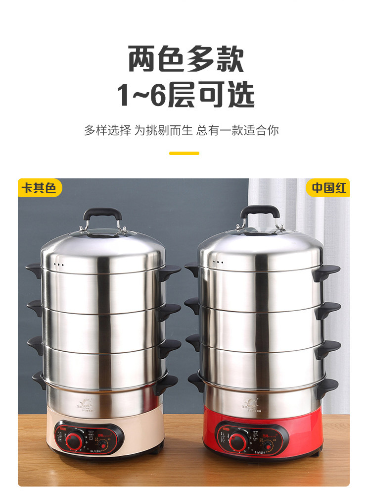 Maoteng heat preservation and temperature regulation timing electric steamer multi-functional household three-layer large-capacity steamed buns, steamed rice, steamed vegetables hot pot