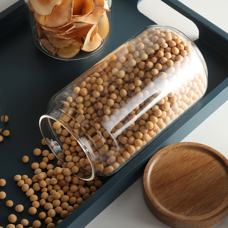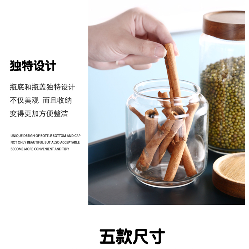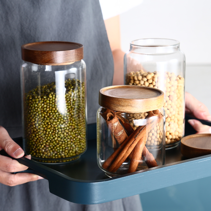 Acacia wood transparent sealed cans Food cans Glass bottles sealed cans Large tea cans with lids Grain storage cans