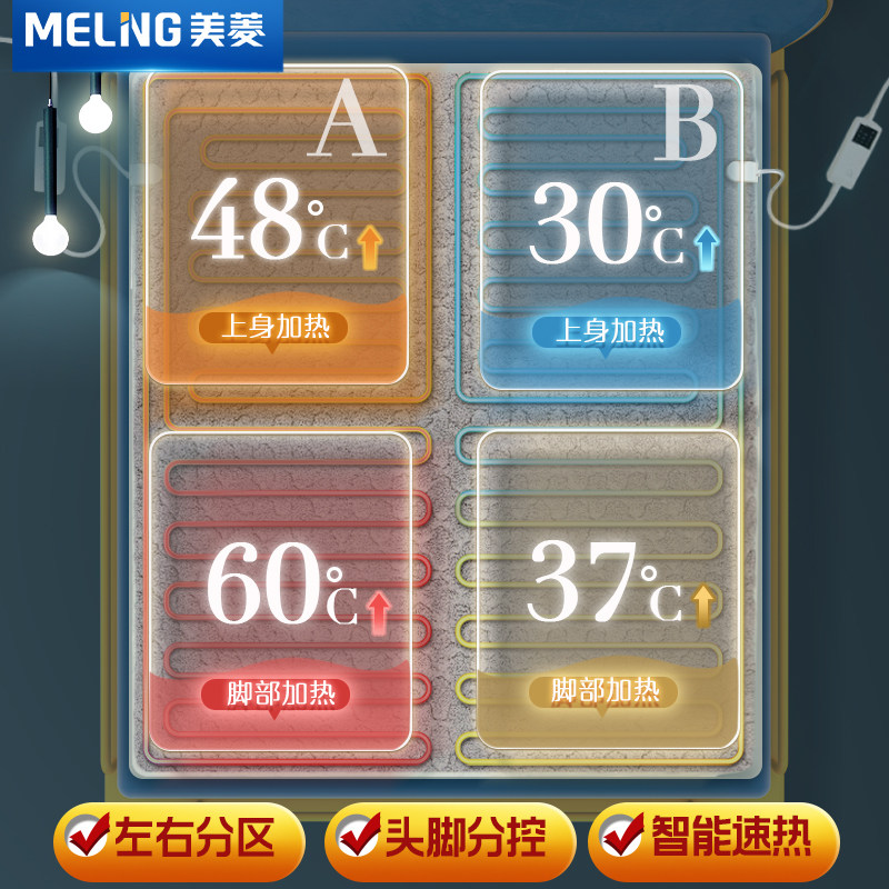 Meiling electric blanket single double control temperature regulating electric mattress plumbing blanket water circulation home safety head and foot partition
