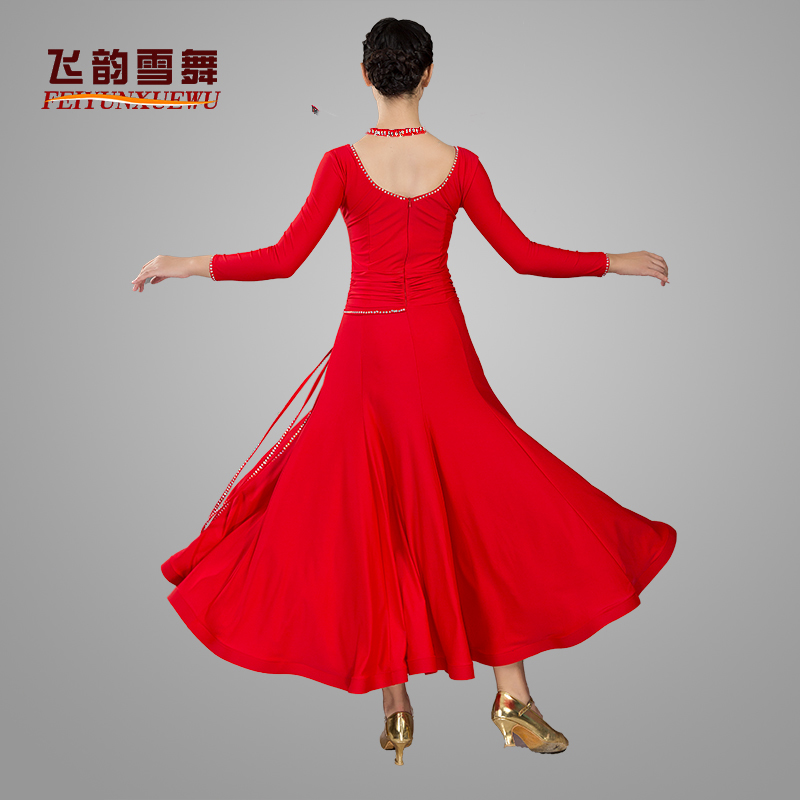 Flying Rhymes Snow Dance New Morden Dance Foreign Dress Adult Waltz Big Swing to Serve National Standard Dance Practice 076