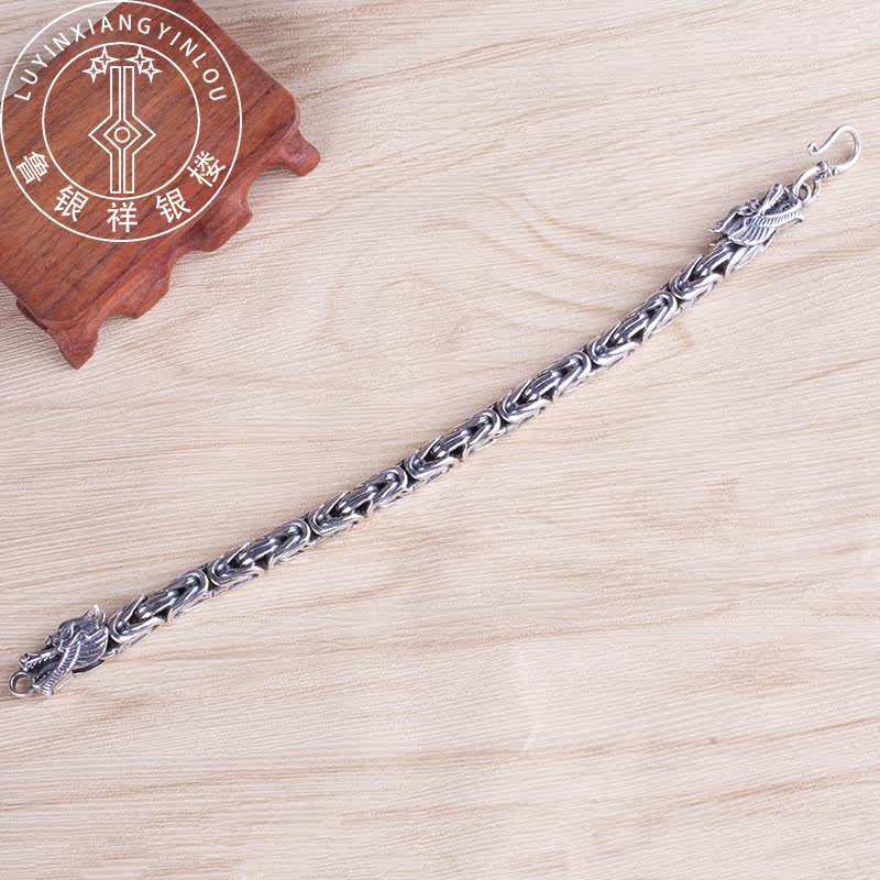 S925 silver Thai silver men's handmade Ping An Pure Silver Male's handmade male silver overbearing retro-head bracelet