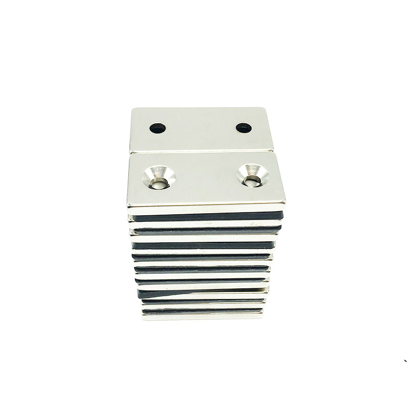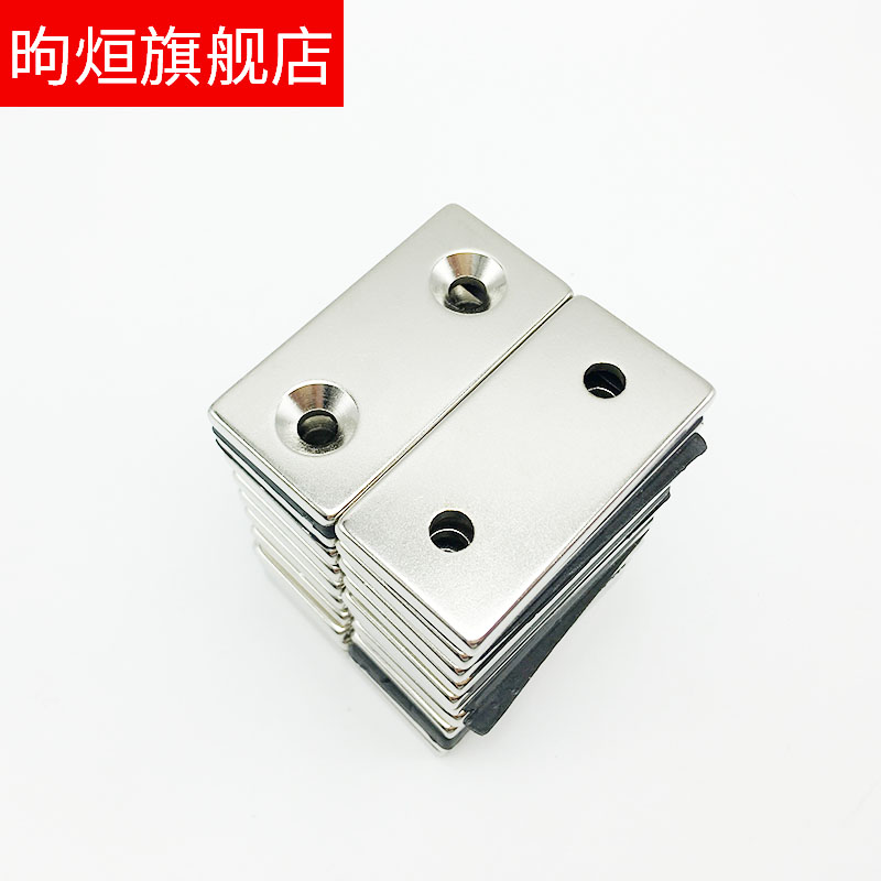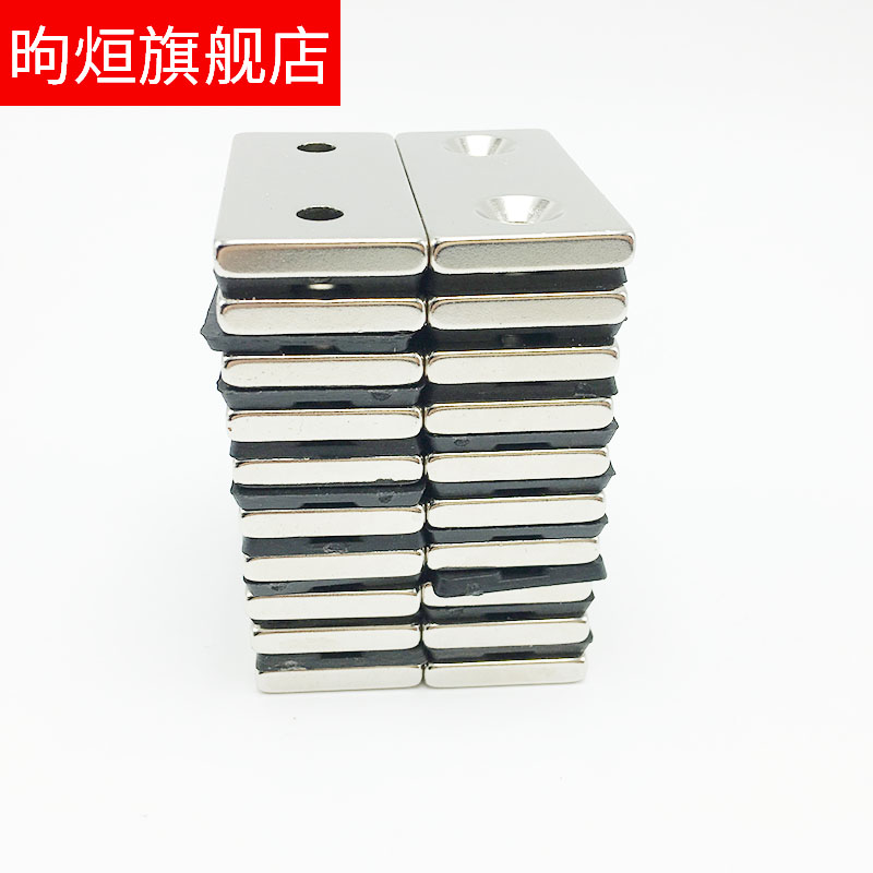 Rectangular double-hole magnet 50 * 25 * 5 mm ultra-strong suction with hole countersunk head magnet