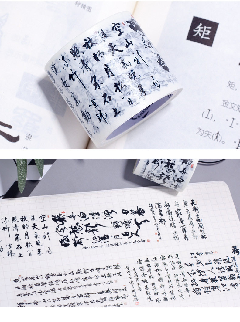Mituto Ancient Style Paper Tape Chinese Poetry Language Calligraphy Tang Poetry Song Language DIY Handbook Decoration Material