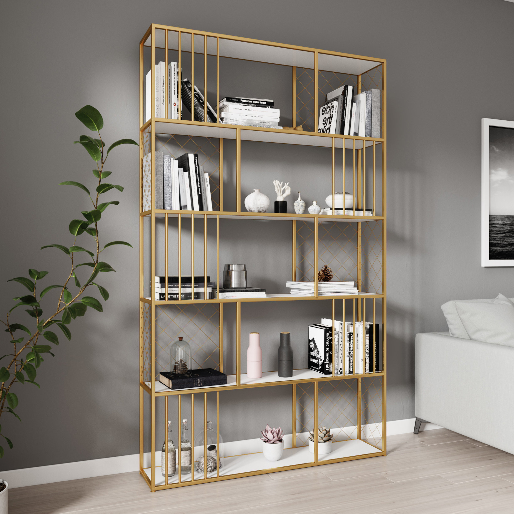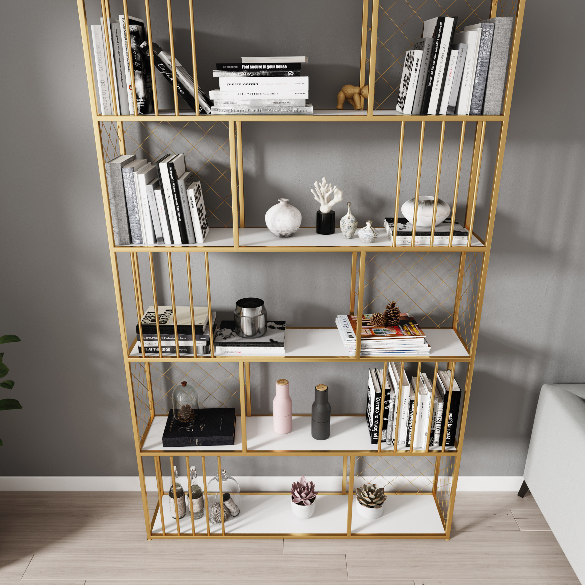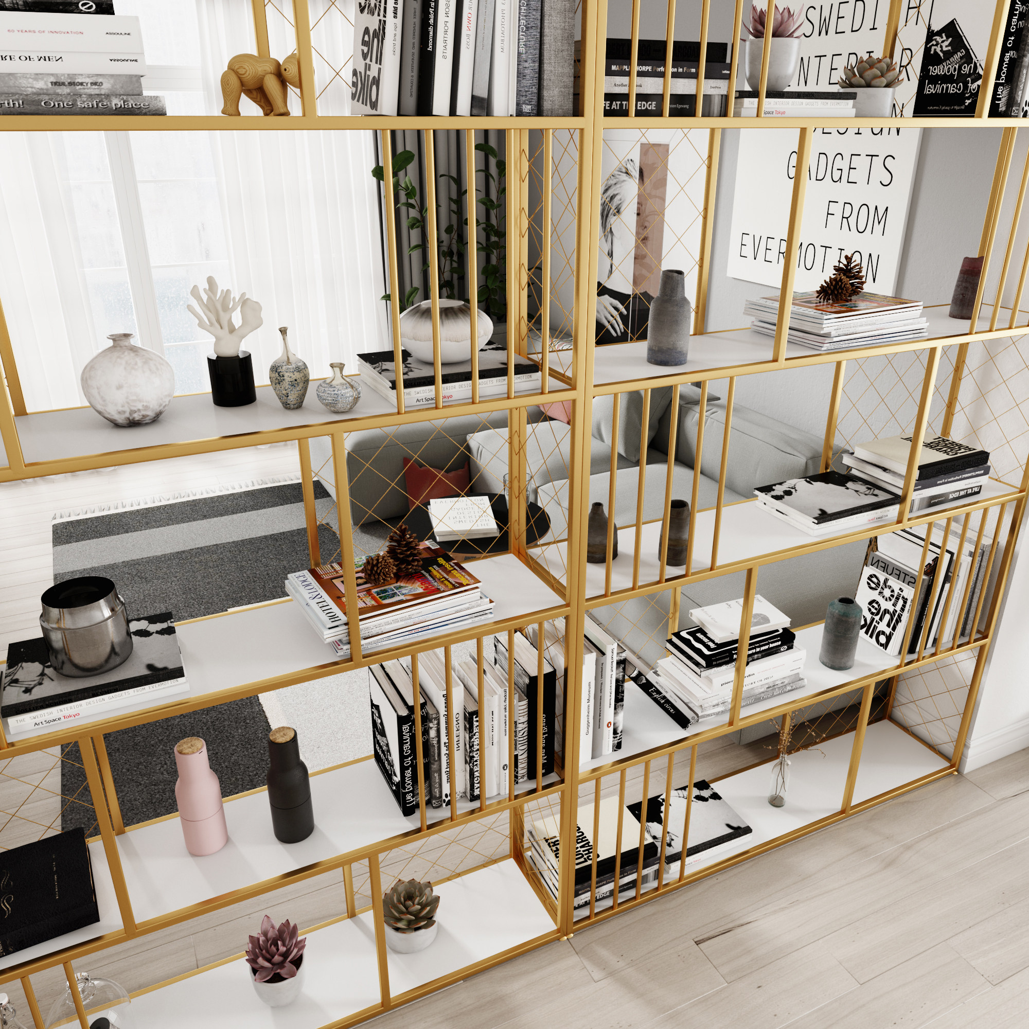 Nordic wrought iron rack office golden creative multi-layer display cabinet living room screen partition simple decorative bookshelf
