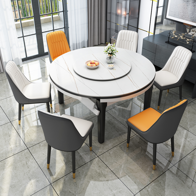 Rock plate dining table and chairs combined modern simple solid wood round table dining table small family type light extravagant and telescopic marble table