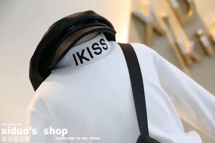 Non-refundable and non-exchangeable 2020 autumn and winter new girls' European version Western style all-match cuffs embroidered letters half turtleneck T-shirt