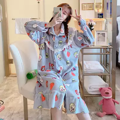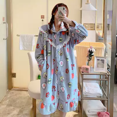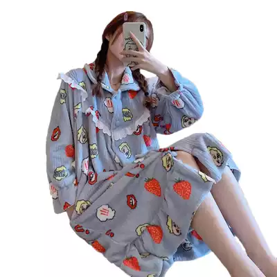 Coral velvet robe women's autumn and winter extended Korean student ins sweet and cute pajamas bathrobe nightgown