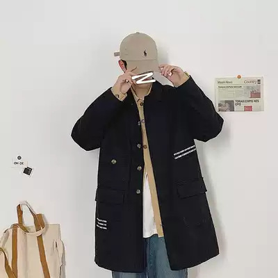 Spring and Autumn runner-up green multi-pocket tooling windbreaker men's medium and long version of the Japanese trend loose simple thin jacket single-breasted
