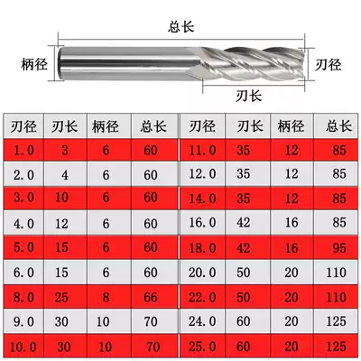 End milling cutter High-speed mesh white steel milling cutter Aluminum alloy milling cutter Metal iron special 4-edged extended gong knife 2 3-edged knife