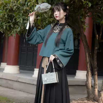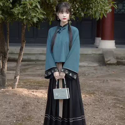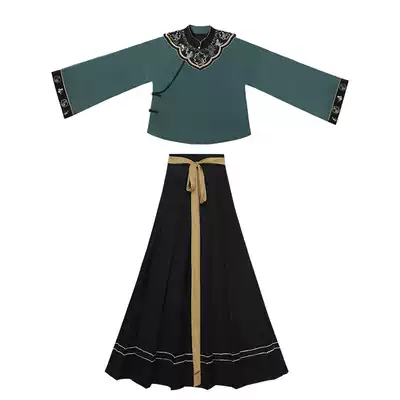 Chuan Dai: Dianxiangzhai original design embroidery cloud shoulder big sleeve top pleated skirt two-piece suit