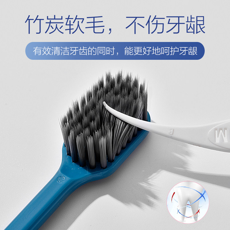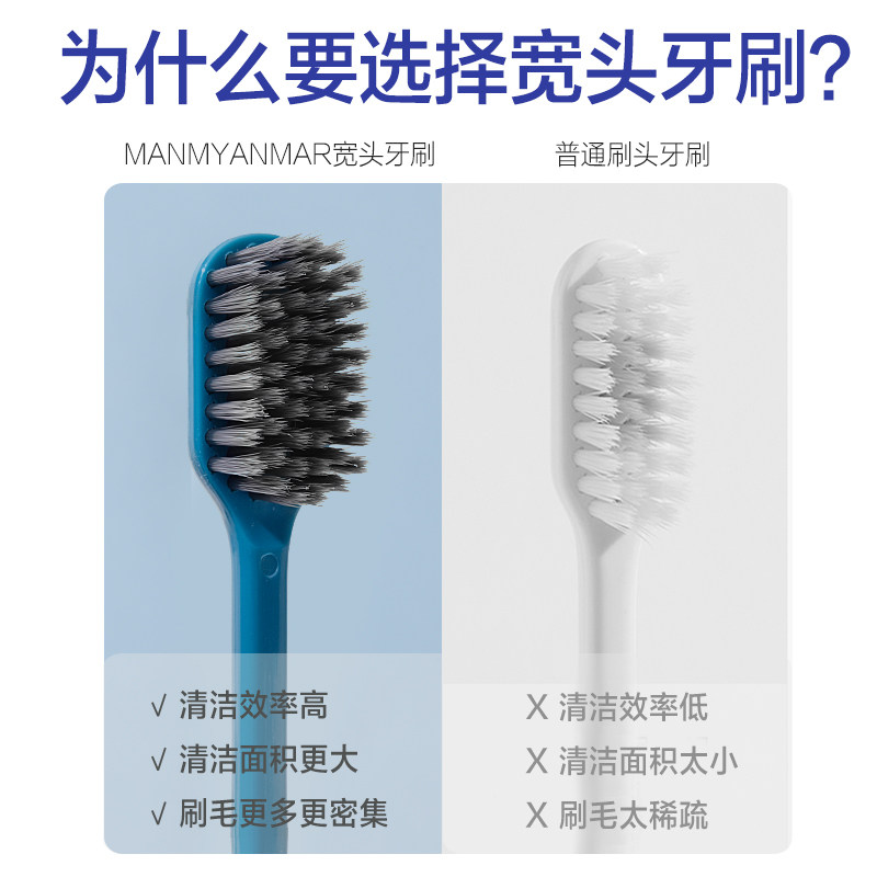 Manmyanmar wide head bamboo charcoal toothbrush Soft hair Adult household family size large head ultra-fine ultra-soft Japan Korea