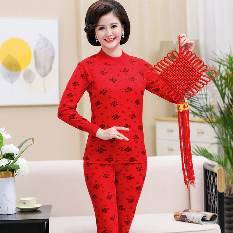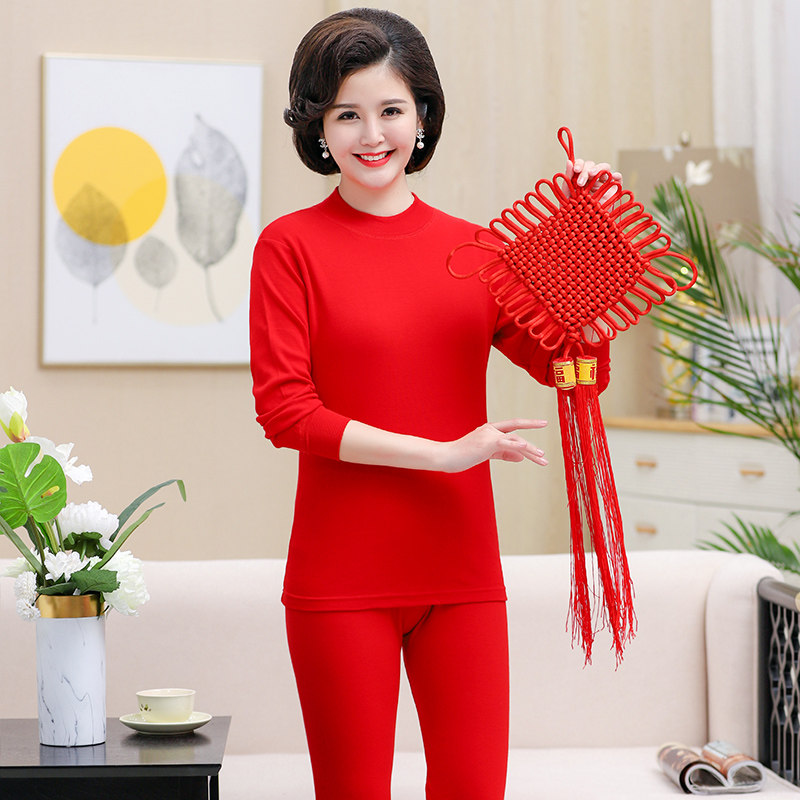 Lady Pure Cotton Autumn Clothing Autumn Pants Mom Full Cotton Warm Underwear Middle-aged elderly Ben's year Great Red Line Clothing Line Pants-Taobao