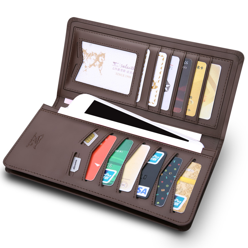 Seven Wolves Men's Wallet Universal 2021 New Long Version Genuine Leather Jows Leather Calf Leather Clips Male Style Money Clip Tide Cards