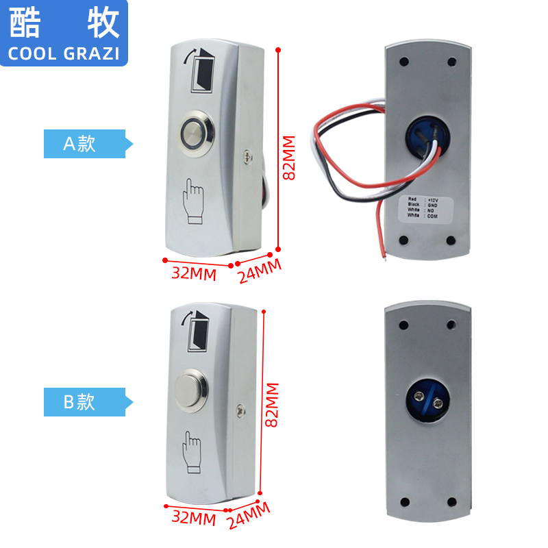 Cool Mu Community Outdoor Waterproof Zinc Alloy Access Control Switch Self-reset Narrow Door Button Metal Light