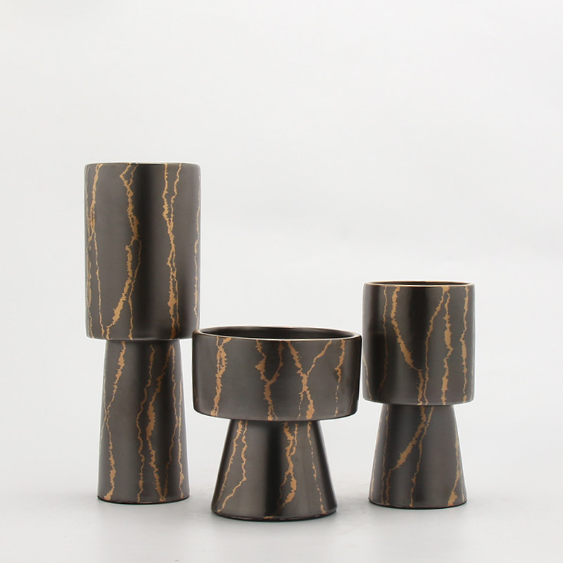 New Chinese style simple light luxury vintage ceramic flower vase decoration model tenant hall TV cabinet entrance decoration