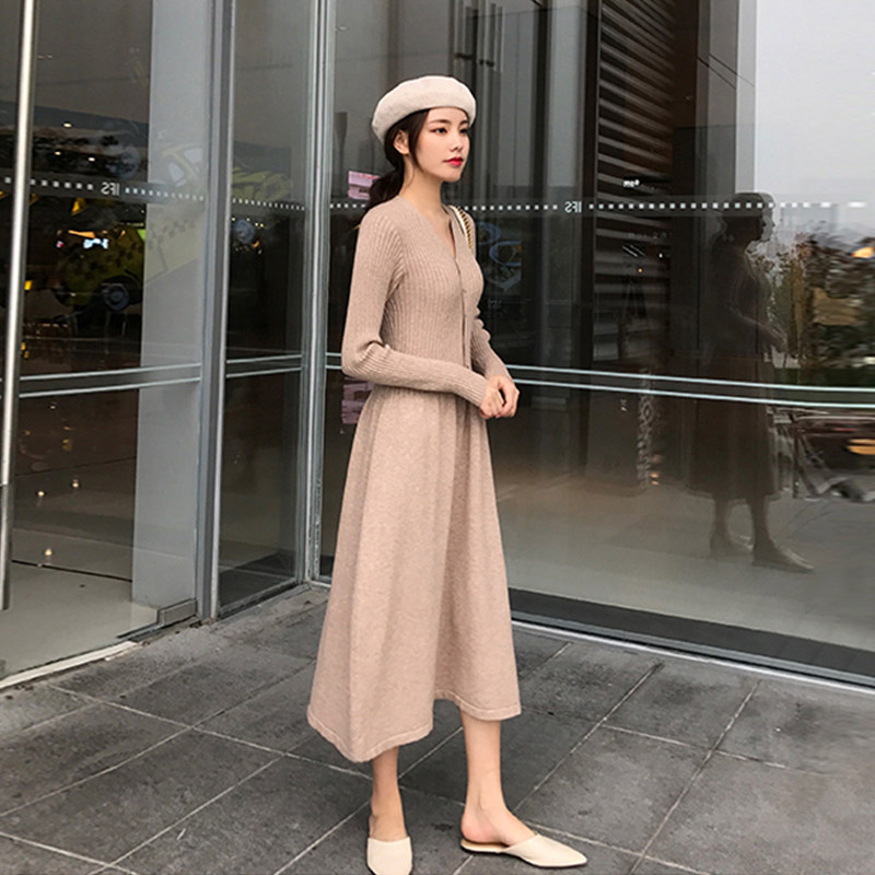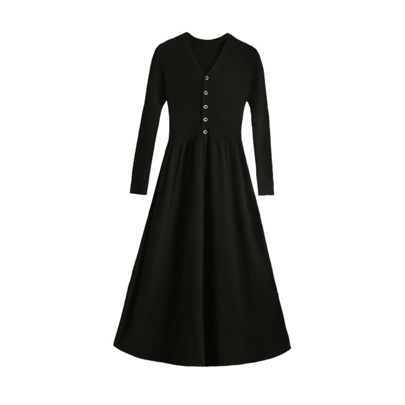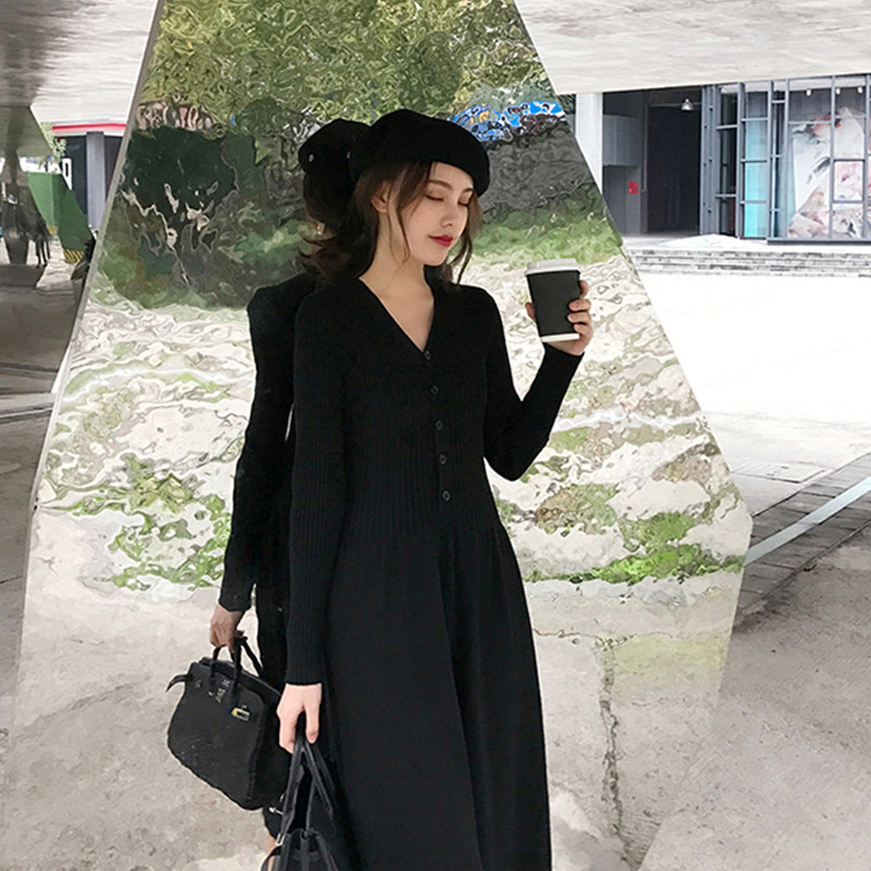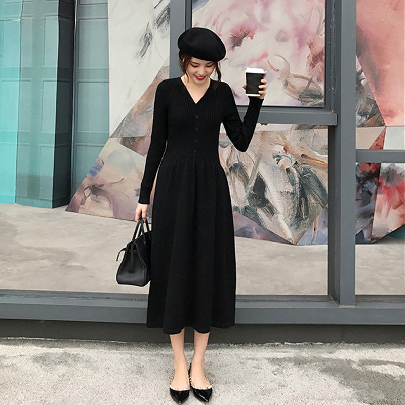 Long dress with great dress, long version over knee sweater skirt bottom small black dress for lap waist display slim temperament foreign dress