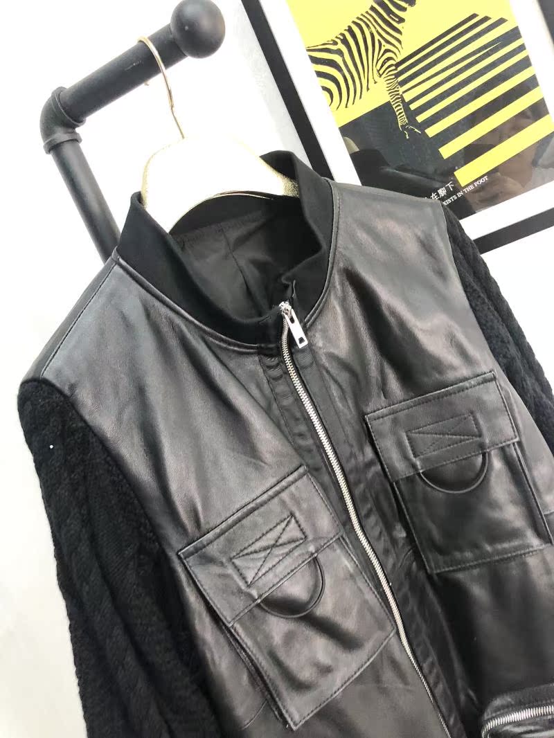 European wool sleeve stitching sheepskin jacket women stand collar bag casual leather autumn and winter new Korean jacket