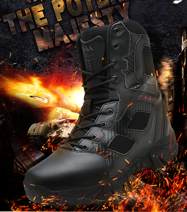 Outdoor Short Boots Men's Special Soldiers Tactical Boots Combat Boots Spring Autumn Season Genuine Leather Tooling Boots Waterproof Non-slip Laced