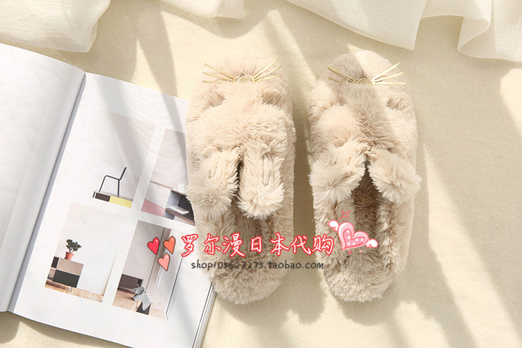 Japanese halluci rabbit cotton shoes cute plush soft cotton with warm non-slip home floor slippers