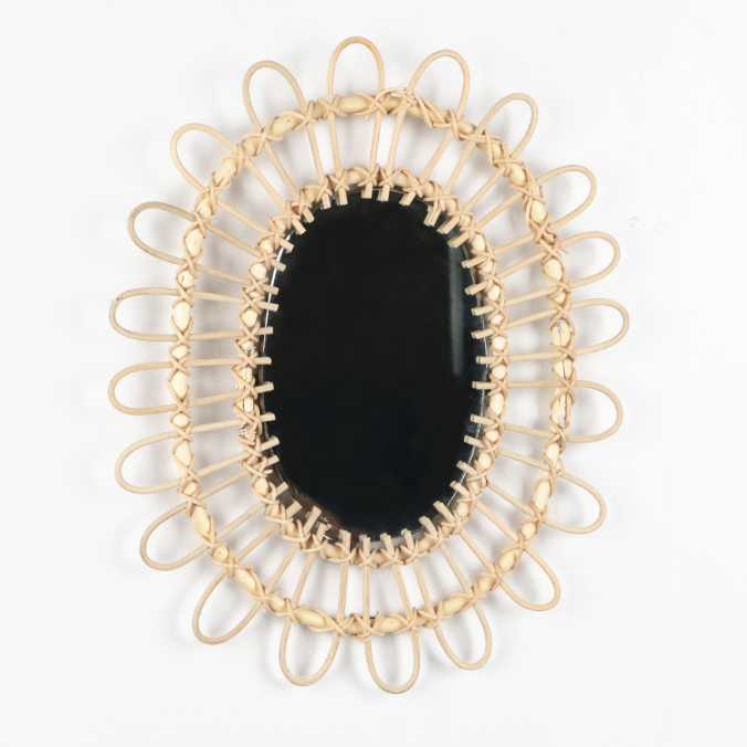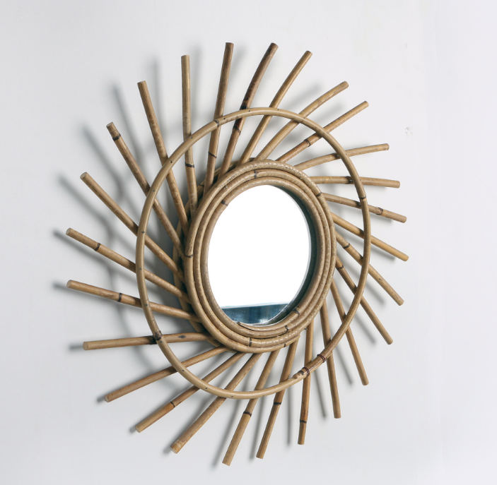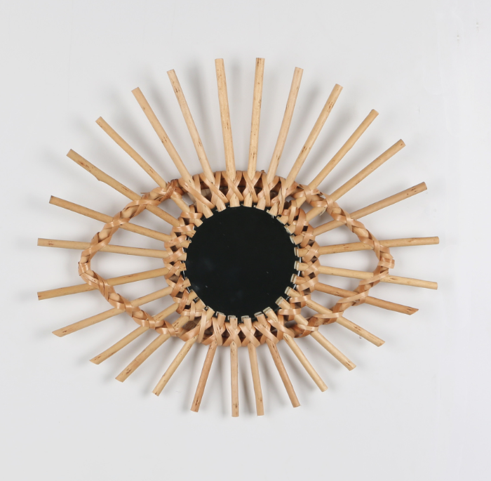 ins Wicker decorative mirror Nordic rattan mirror hand-woven bed and breakfast decorative mirror wall decoration wall hanging photography props