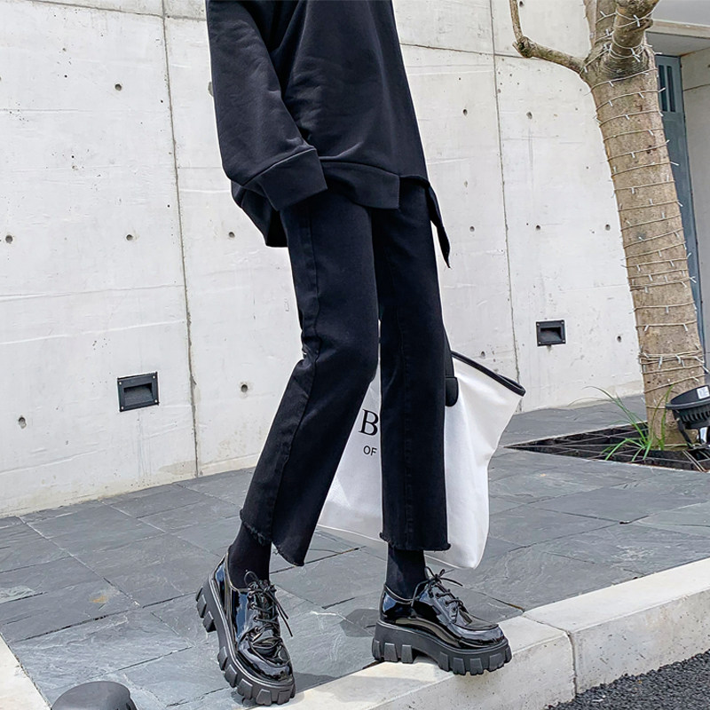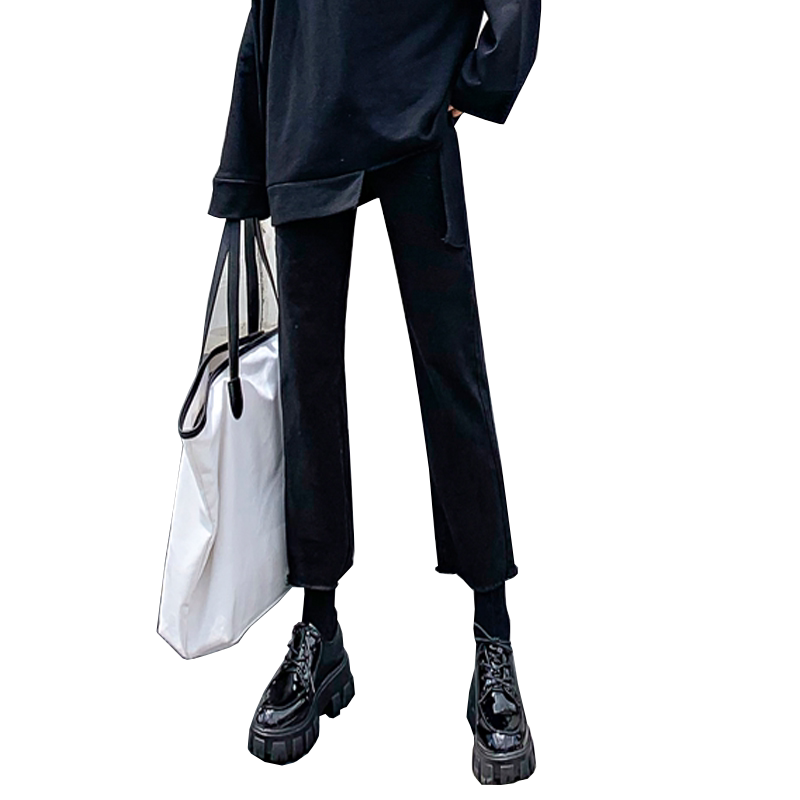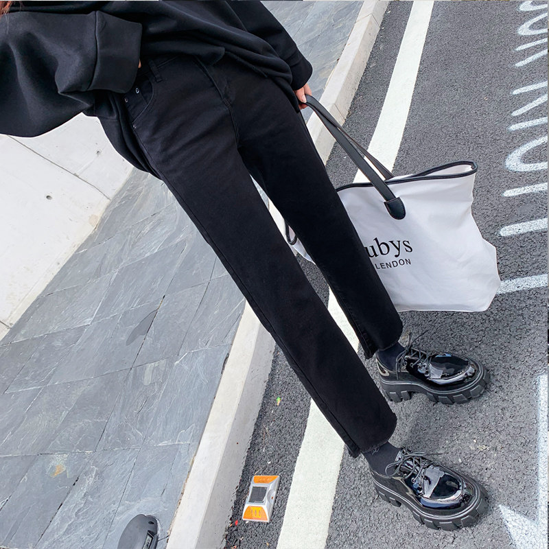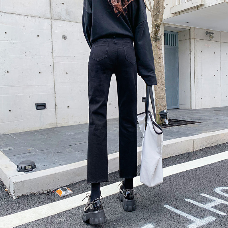Black jeans female display slim 2019 Fall high waist loose width 100 lap Elegant Daddy Smoke Pipe Straight Cylinder Pants