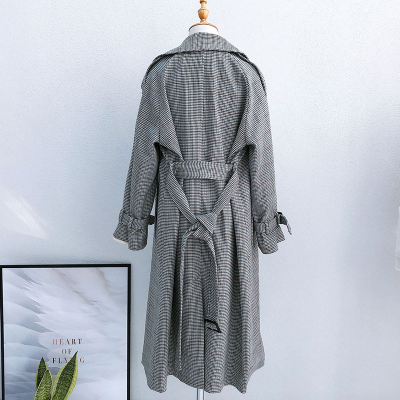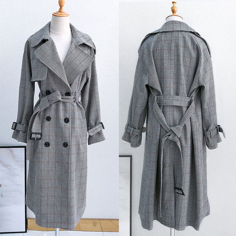 2023 spring waitmore houndstooth style windbreaker women's mid-length over-the-knee British style loose coat jacket