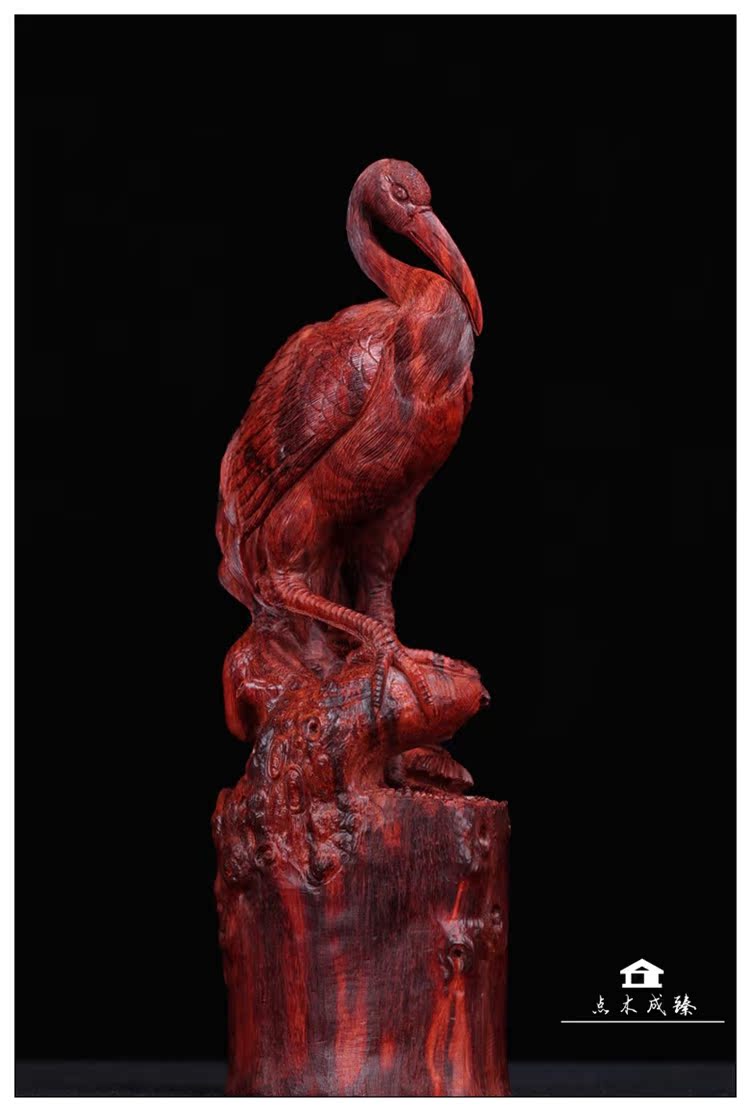 Red Wood India Small Leaf Purple Sandalwood Old Stock Pine Crane Longan Wood Engraving Pendulum Pieces Handicraft Living Room Home Residence Ornament Creativity