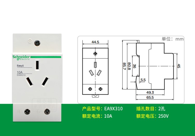 Schneider digitised rail socket 3 holes 10A EA9X210 2 holes power triple digits modularizing wall sockets