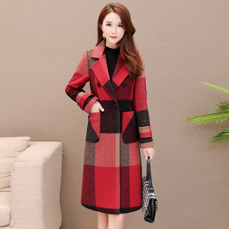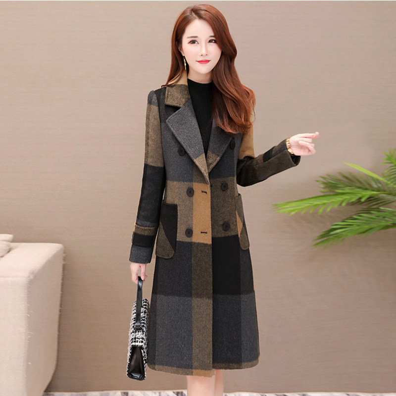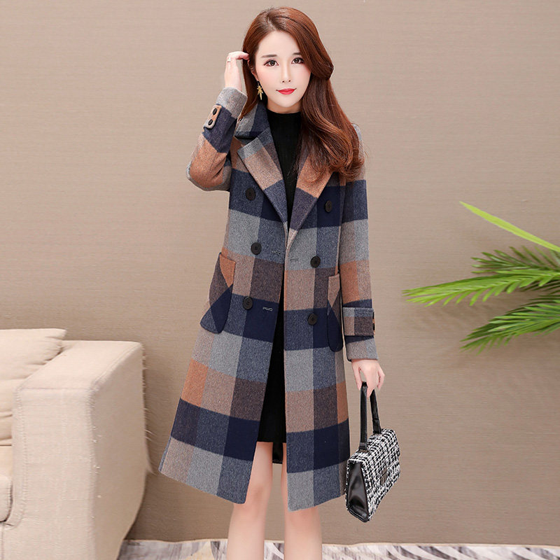 Plaid woolen coat woman 2021 new autumn and winter medium long version high-end brand cashmere big clothes small sub thickened