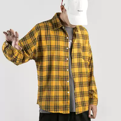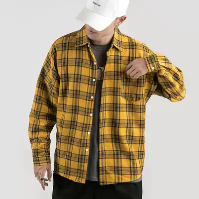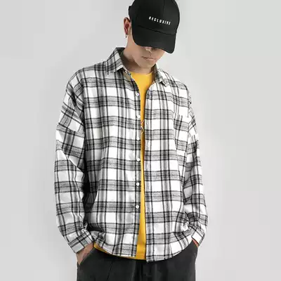 GOOMIL LEE spring and autumn men's shirt trend fashion loose plaid long sleeve shirt lapel casual versatile