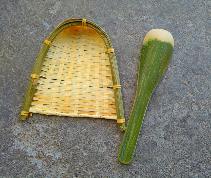 (2 pcs) 1 bamboo dustpan 1 Bamboo sand shovel