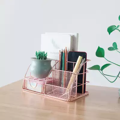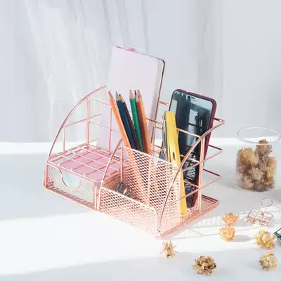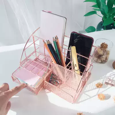 Stationery storage box student multi-function dormitory storage artifact desktop iron mesh girl heart pen cartridge combination