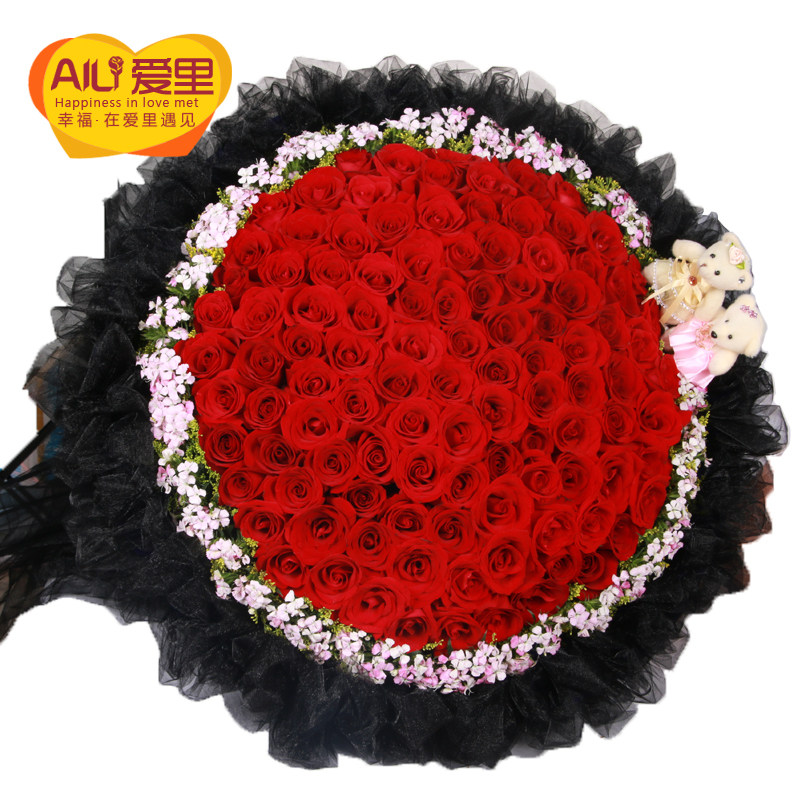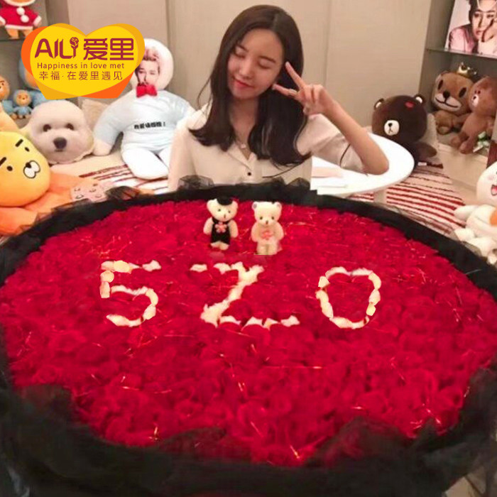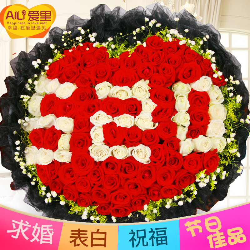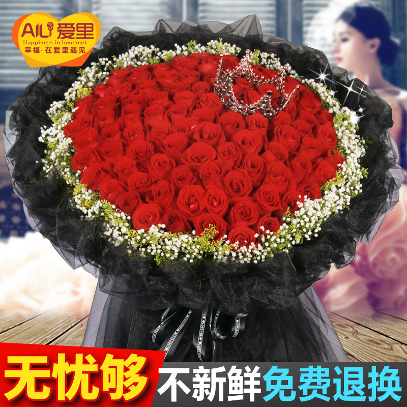 99 roses small night light proposal bouquet Birthday flower delivery in the same city Beijing Shanghai Guangzhou Chengdu Shenzhen send