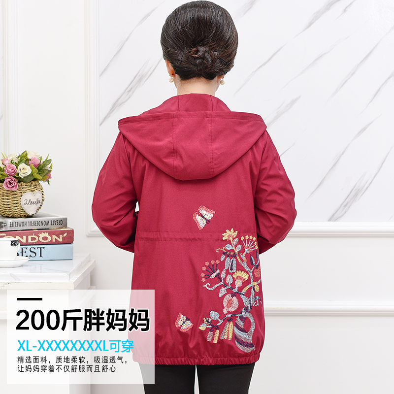 Middle-aged and elderly women's autumn fattening plus size mm200 kg middle-aged long sleeve coat fat mother loose windbreaker