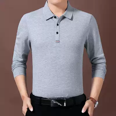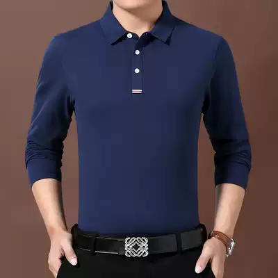 Woodpecker spring cotton men long sleeve T-shirt middle-aged dad dress loose base shirt T-shirt lapel polo shirt