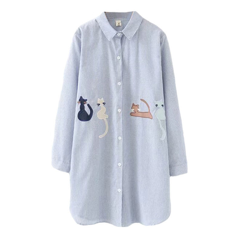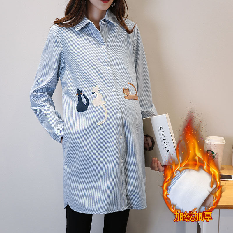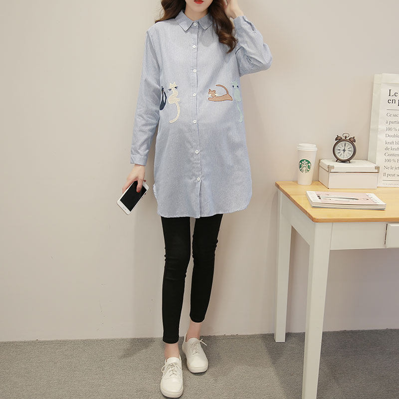 Pregnant Woman Shirt Spring Autumn Dress Medium Long Version New Beating Base Blouses Large Size Loose Stripes Fashion 100 Hitch OL to Work